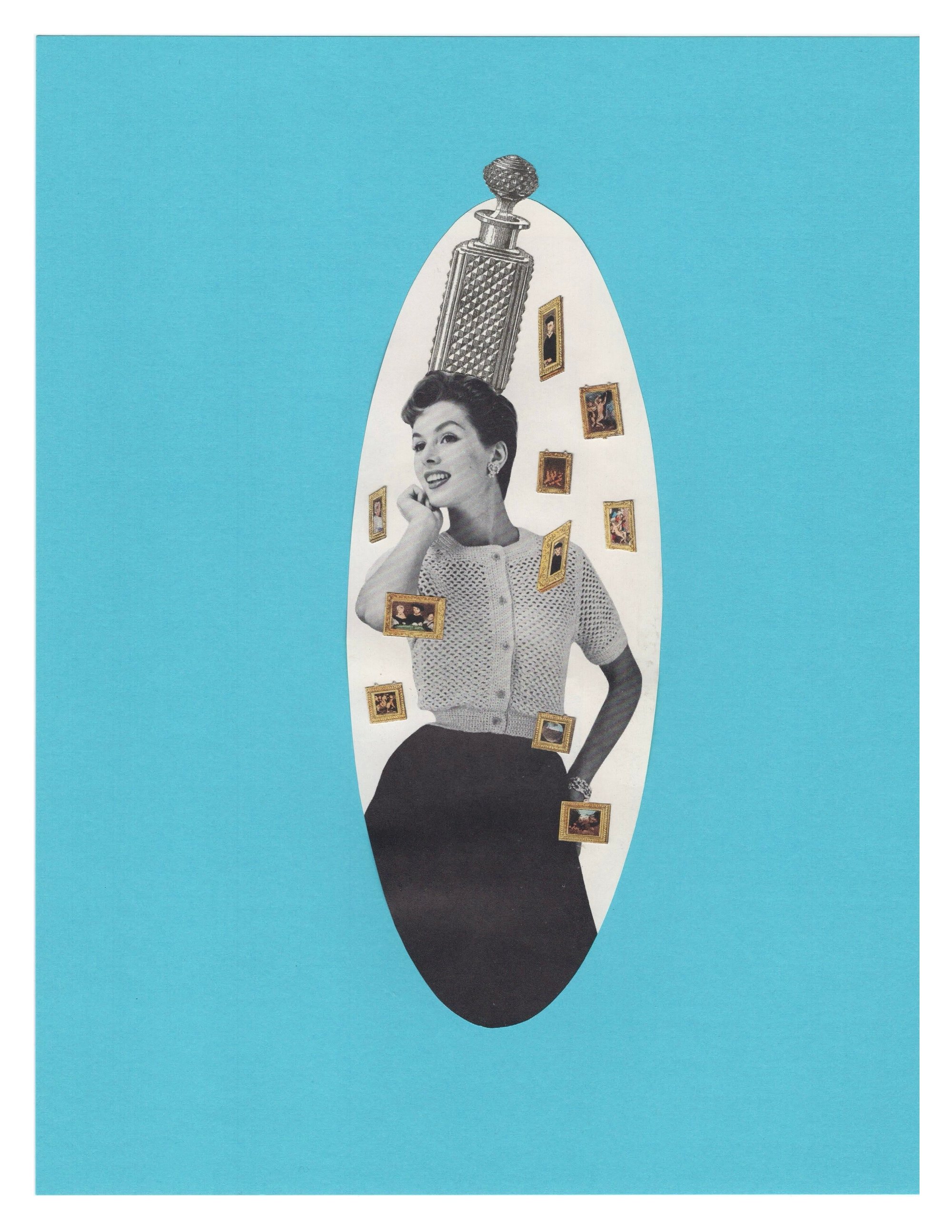 Hand-cut collage on paper 8.5 x 11" Original artwork by Sarah Stoddard Made for Februllage 2026, Day 9: Bottle